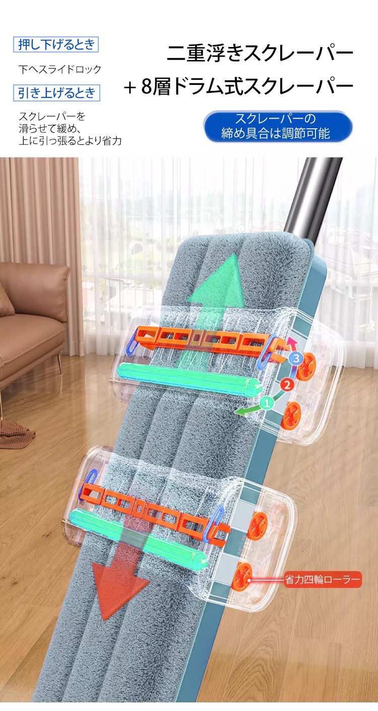 手洗い不要フラットモップ